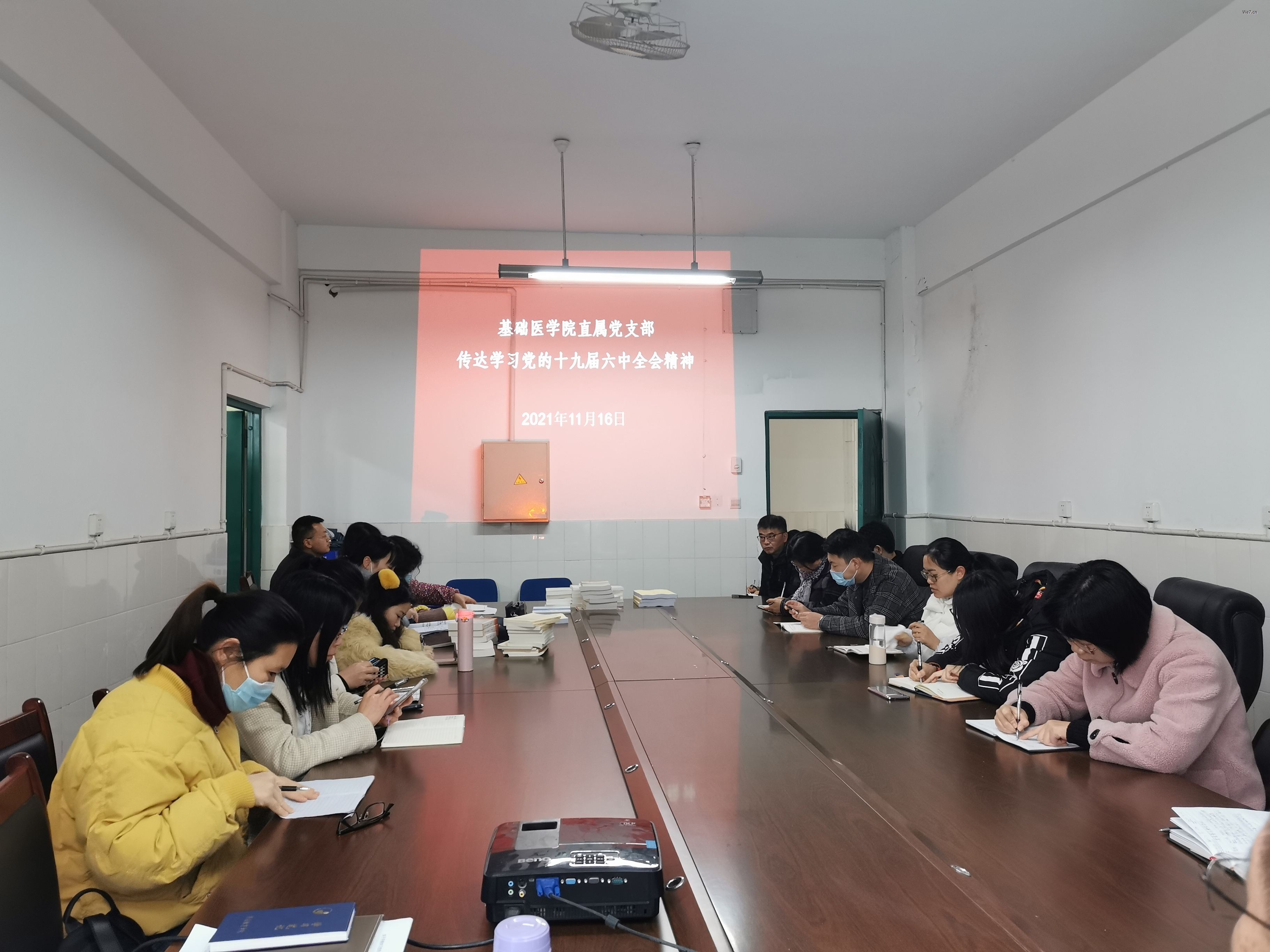太阳成集团tyc7111cc直属党支部 传达学习党的十九届六中全会精神