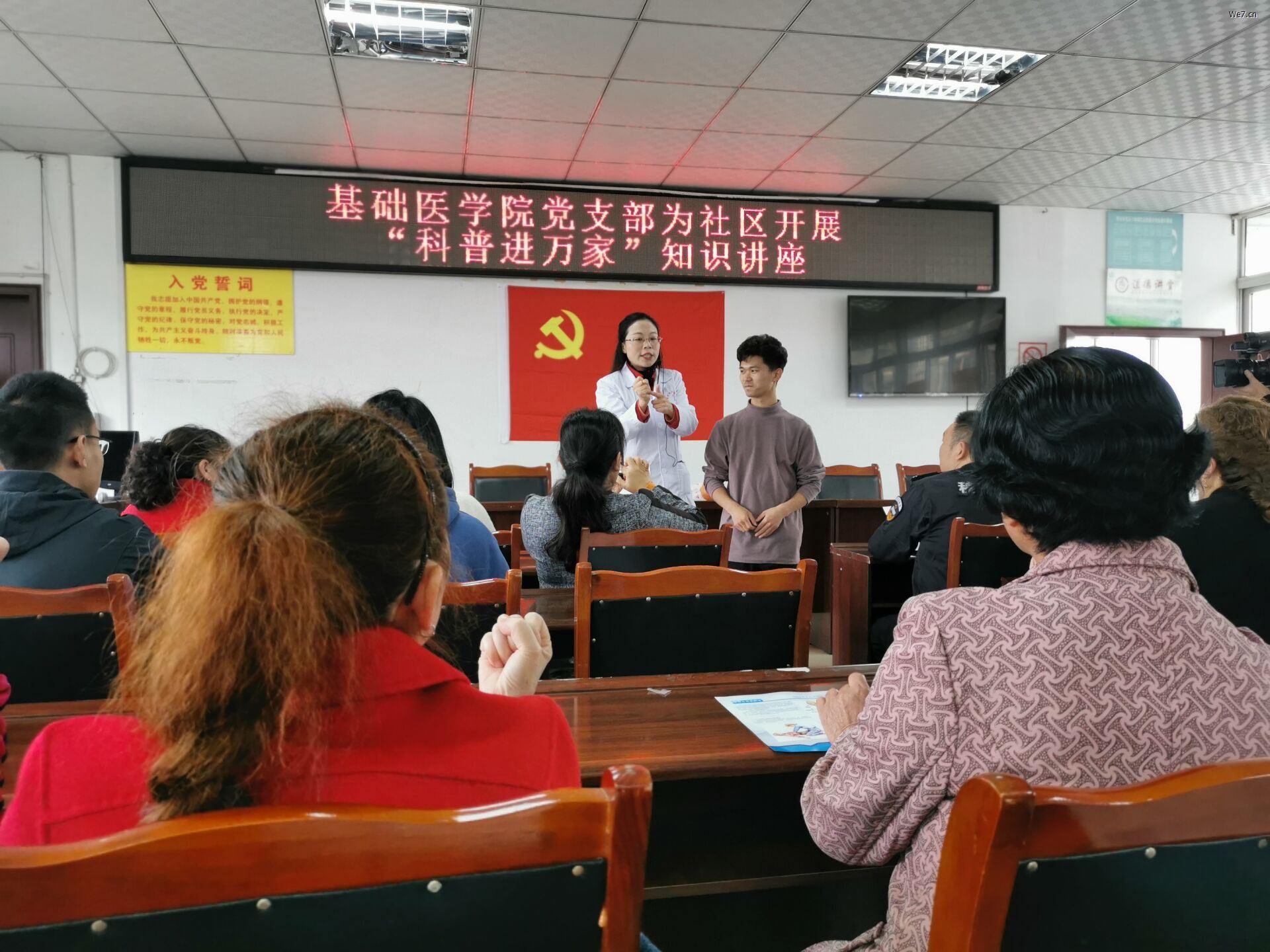 为进一步推进“不忘初心、牢记使命”主题教育,更好地搞好社区“联包帮”活动,基础医公司党支部立足岗位本身、利用专业优势,于10月25日下午在爱国苑小区开展了主题为“科普进万家”急救知识讲座。基础医公司党支部书记孙玉锦带队,李明蓉同志主讲,全体无教学任务的党员老师及社区居民50余人参加了本次活动。