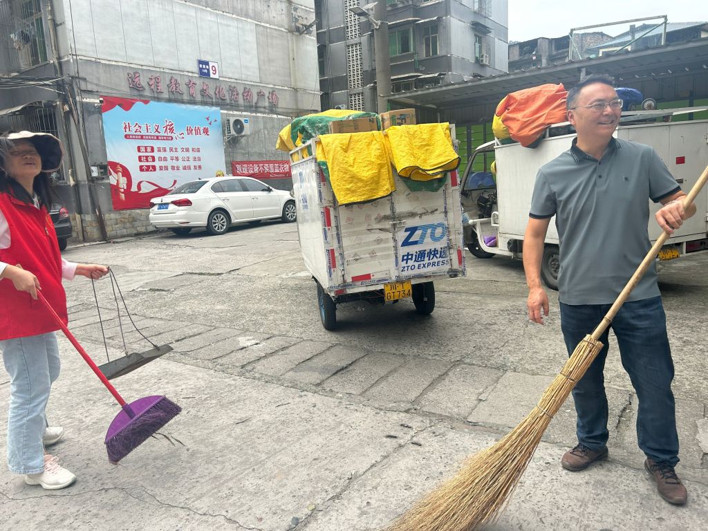 活动伊始,志愿者们手持扫帚、撮箕等工具,对小区公共区域进行全面清扫。大家分工协作,清理落叶、纸屑等地面垃圾,并对卫生死角进行重点整治。经过近两小时的劳动,小区环境焕然一新。志愿者们以实际行动传递了文明环保理念,赢得了居民的连连称赞。小区居民纷纷表扬老师们不怕脏、不怕累,为我们营造了干净舒适的生活环境,真的很感谢!