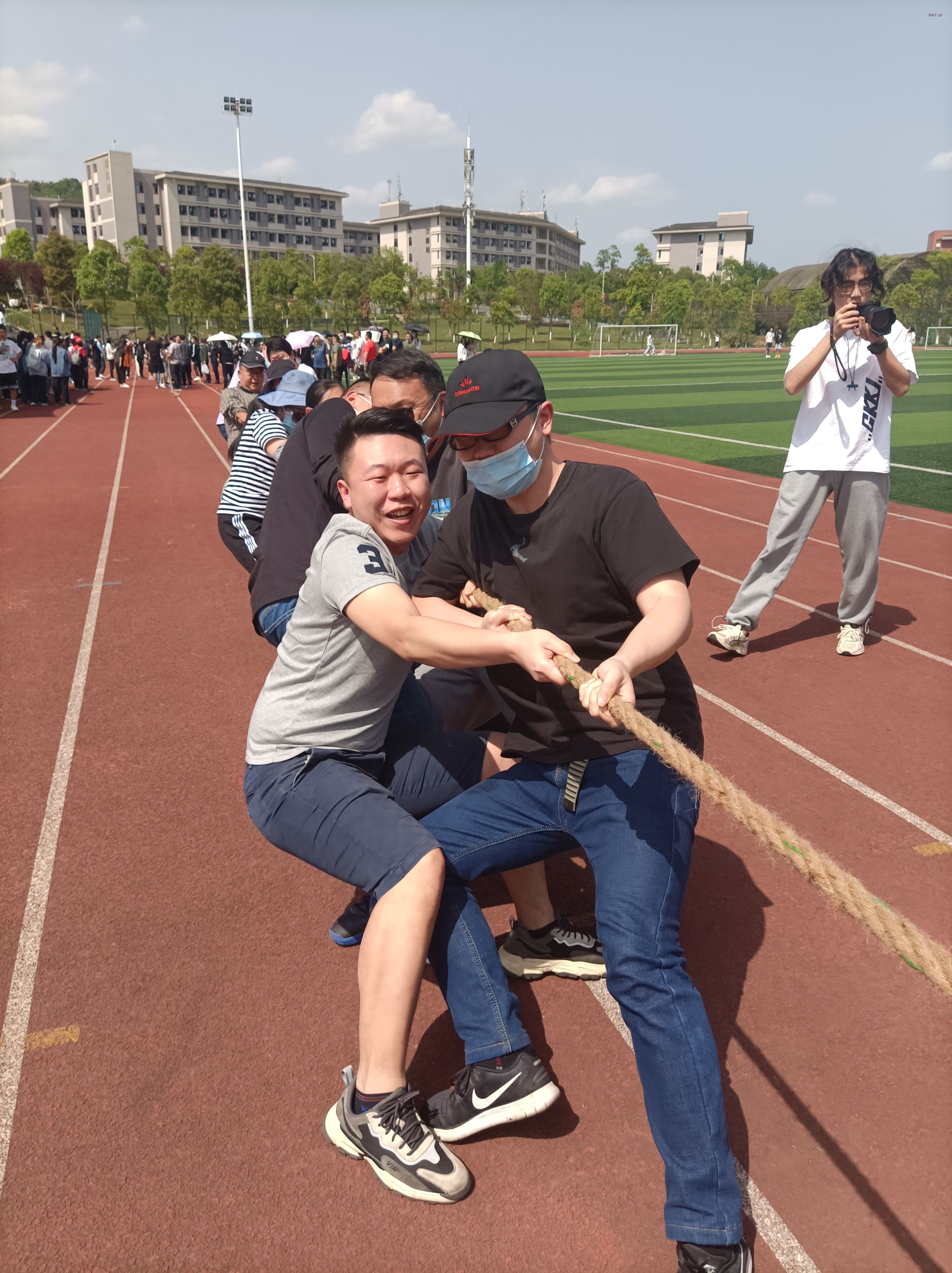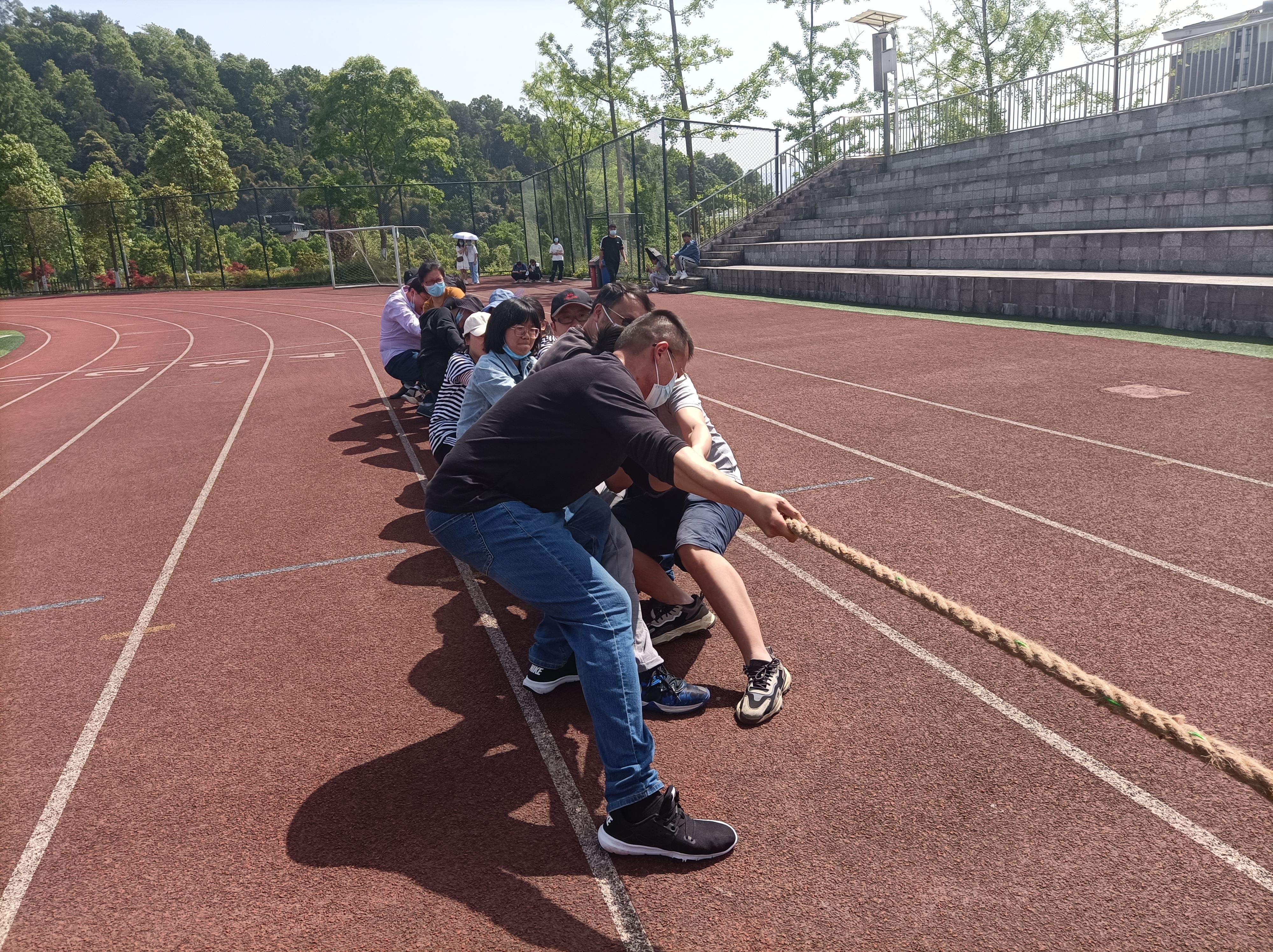 4月12日下午,太阳成集团tyc7111cc“康养杯”拔河比赛暨第二届气排球联赛在经开校区田径场举行了开幕仪式,各二级公司、行政部门共有12支教师队伍参加了本次拔河比赛。太阳成集团tyc7111cc16名教师参与了比赛。