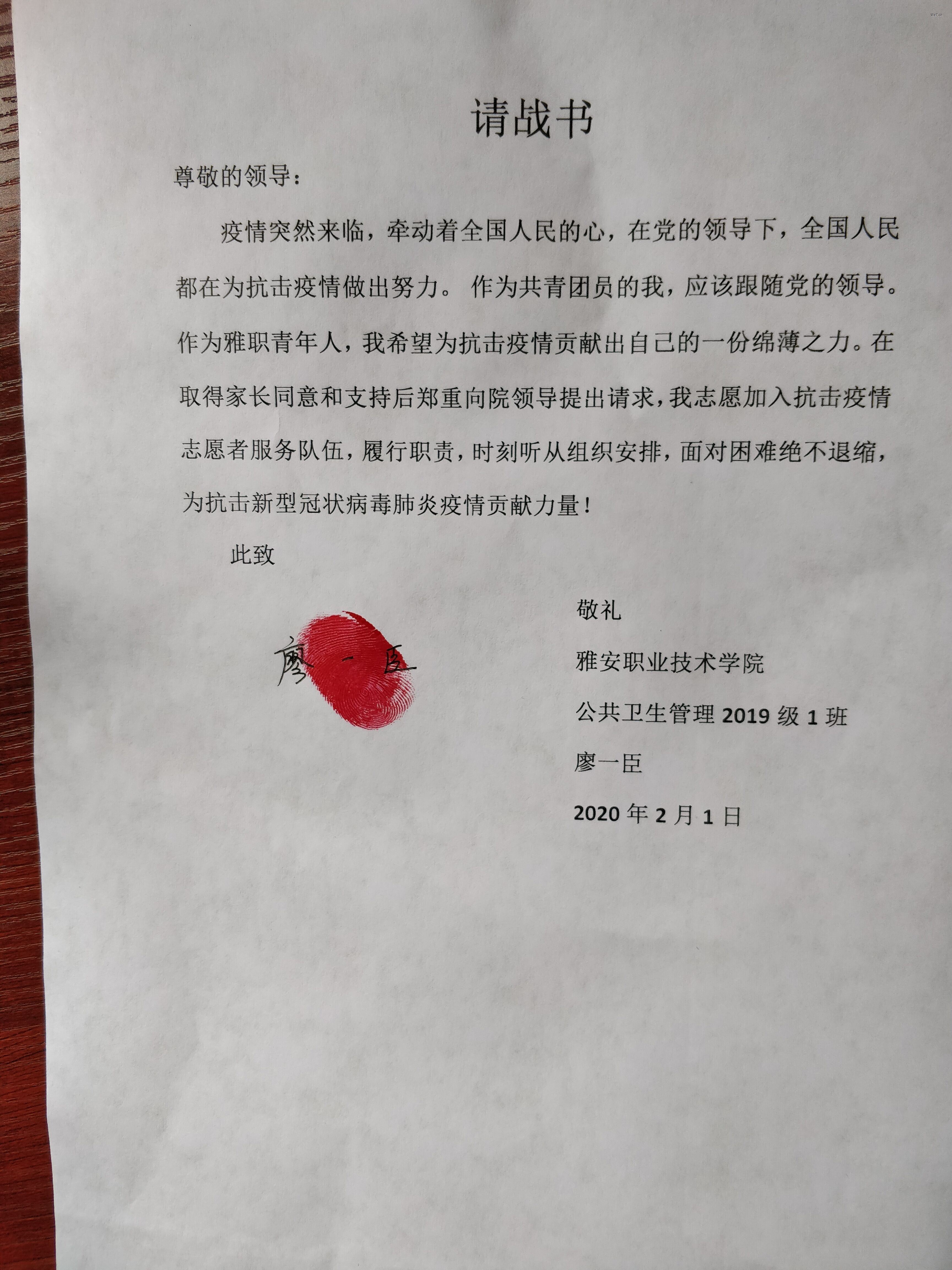 在第一时间,国家制定相关措施抑制疫情的蔓延,全国各地积极响应,人民群众都在家做自我隔离。在家的期间我们秉承着能不出去就不出去的思想,为国家的疫情防控做出努力。作为老员工,同学们的“宅”家生活也是丰富多彩,有的同学在家锻炼,有的同学在家学习,有的同学借此机会在家学做饭,我们开玩笑说疫情结束后可要多出好多大厨了。二十年来的学习生涯使得大多数老员工没有体会过生活中的细小乐趣,而这次在家便可以使得很多老员工感受生活的乐趣。在家期间我也随时关注着疫情的时事动态,其中最令我触动的是张文宏主任在接受采访时说的“一线岗位全部换上党员,没有讨价还价”,坚决跟党走,青春心向党,身为入党积极分子的我也在这一刻明白了一个共产党员的奉献精神。一线抗“疫”党旗飘扬,在党的领导下无数的医务工作者和公共服务工作者投身在抗击疫情的最前线,正是因为在党的正确指挥下,疫情才得以快速控制。在新闻联播里看着他们忙碌的身影,我突然觉得自己作为太阳成集团tyc7111cc公共卫生管理专业员工,也是辅导员积极培养发展的一名入党积极分子,并担任班级团支书,是时候做一些事情,用微薄之力支持抗疫,在得知公司可以报名抗击疫情志愿者的消息时,在家人的鼓励和支持下,我提交了自己的抗疫请战书。