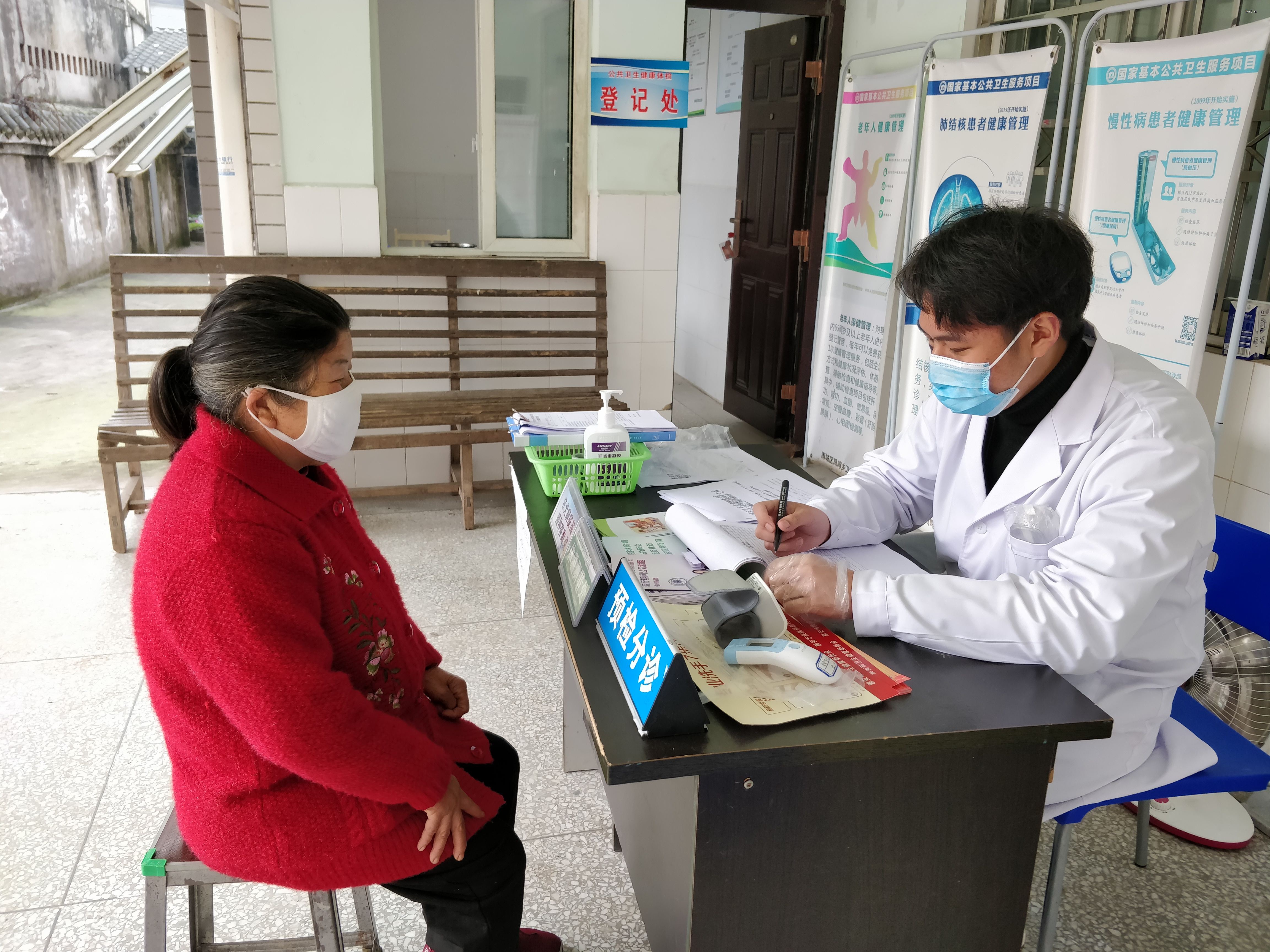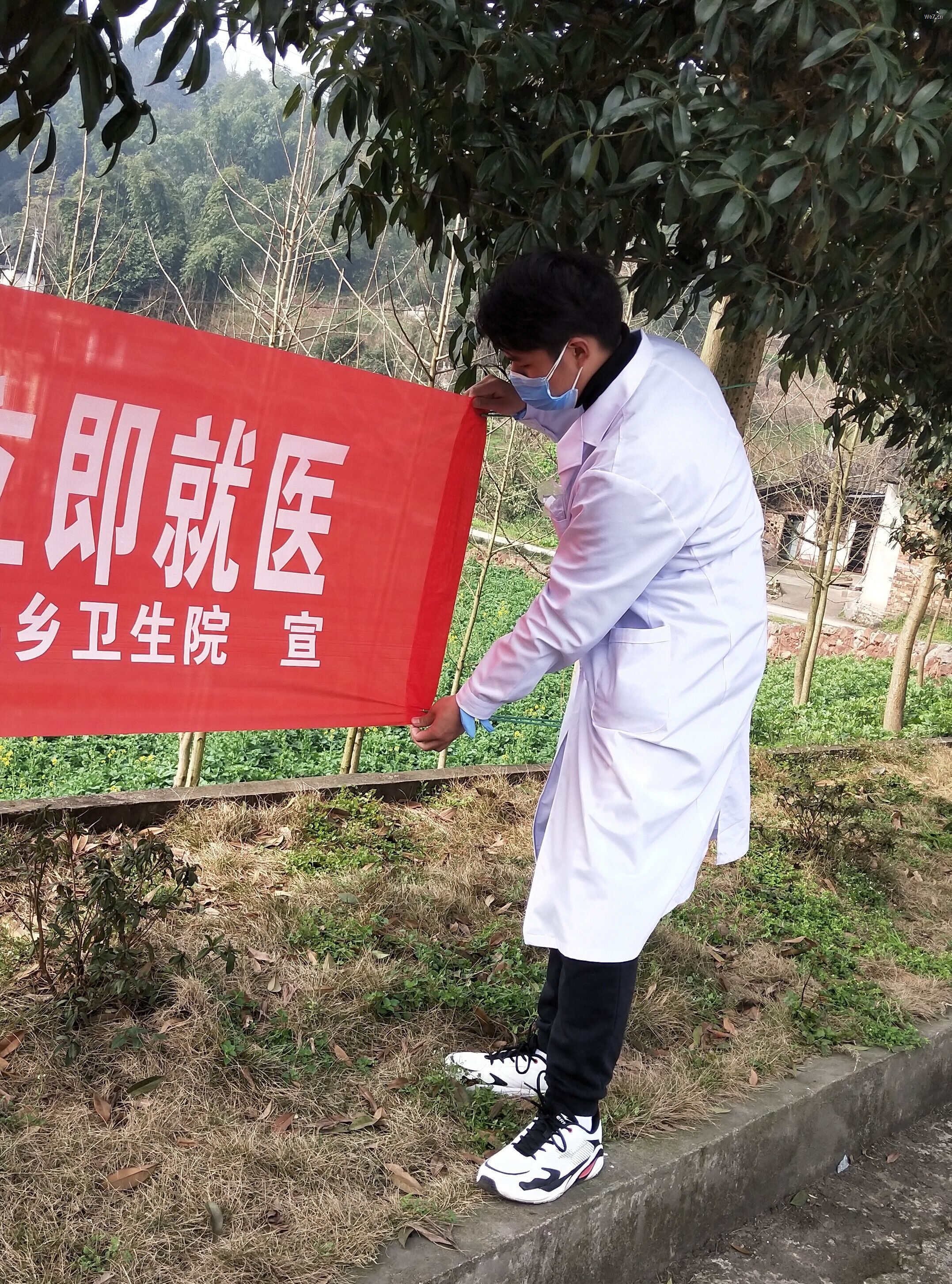 我在接到卫生院通知的时候第一感觉是激动,二十年来我们都在索取,向家人索取,向国家索取,向这片生我养我的土地索取,而现在我终于可以为这方土地奉献出自己的一份力量。第二天我带着我崭新的白大褂来到了雅安凤鸣收费站卡点,我到的时候看到了很多交警同志以及医务工作者,测量体温然后各种登记就是他们单调的工作,我戴上隔离帽和防护手套去接替他们,当我在登记处站了接近八个小时后才明白看似简单的工作其实异常困难,手套因为透气性差的缘故,手被汗水泡的发白,头套勒住的额头下是一条深深的痕迹。这只是我的第一天,但他们已经坚守了十几天,有个交警同志给我说到了晚上才是最难受的时候,晚上特别冷,而且不断有车上下高速,他说第二天离开时都有种精神恍惚的感觉,听到这里我肃然起敬。后来我被调到了卫生院做预检分诊和健康证明的办理工作,很多村民都不知道健康证明如何办理,我每次都细心的给他们说明需要什么手续和资料,在此期间我发现一个问题,体温检测后总有人会问问自己的体温,在得知没有什么异常情况下,每个人都会露出一丝放松的微笑。我想这是对自己的放心,也是对家庭安全的保障。而这一丝微笑也是对一线抗“疫”战士最大的鼓励,蓝天白云下就是那蓝色的警服和白色医用防护服。