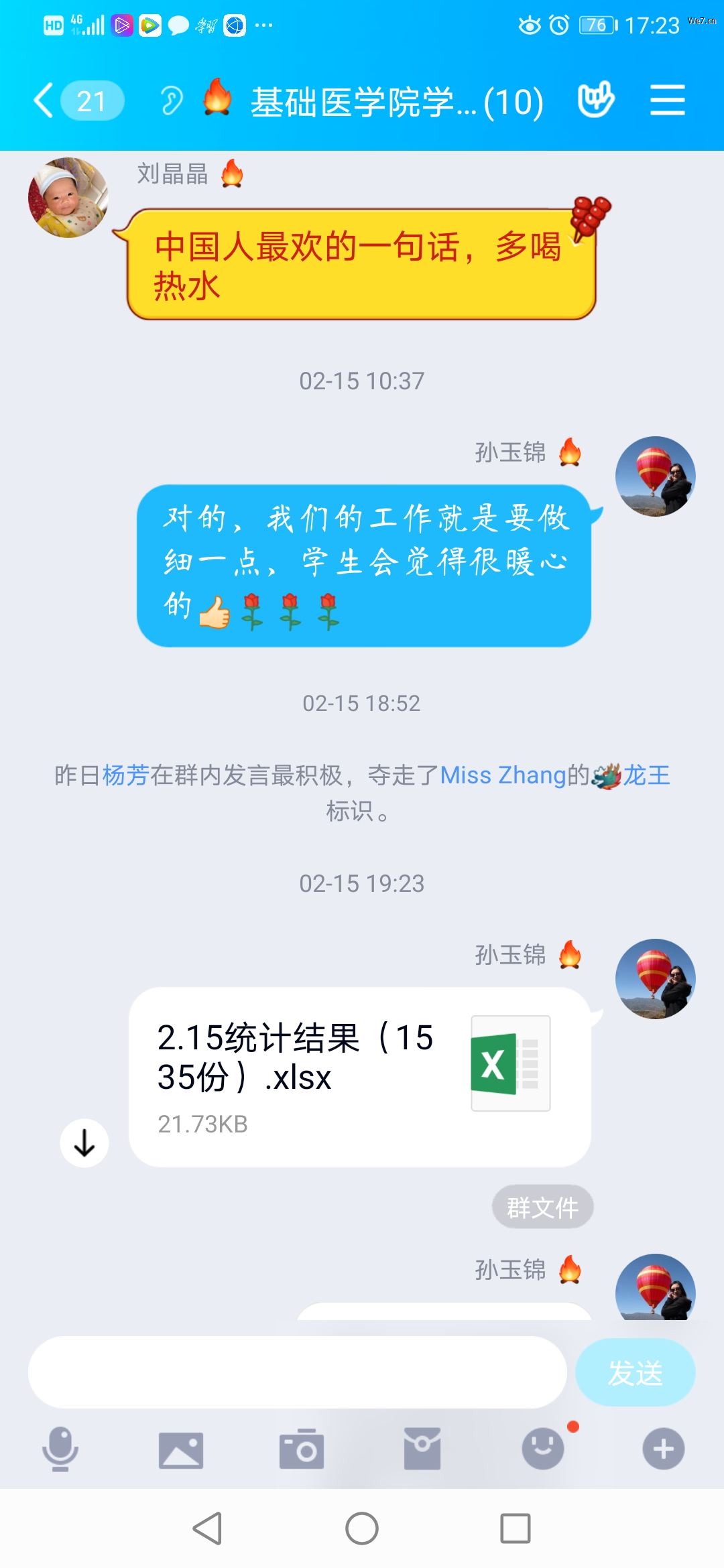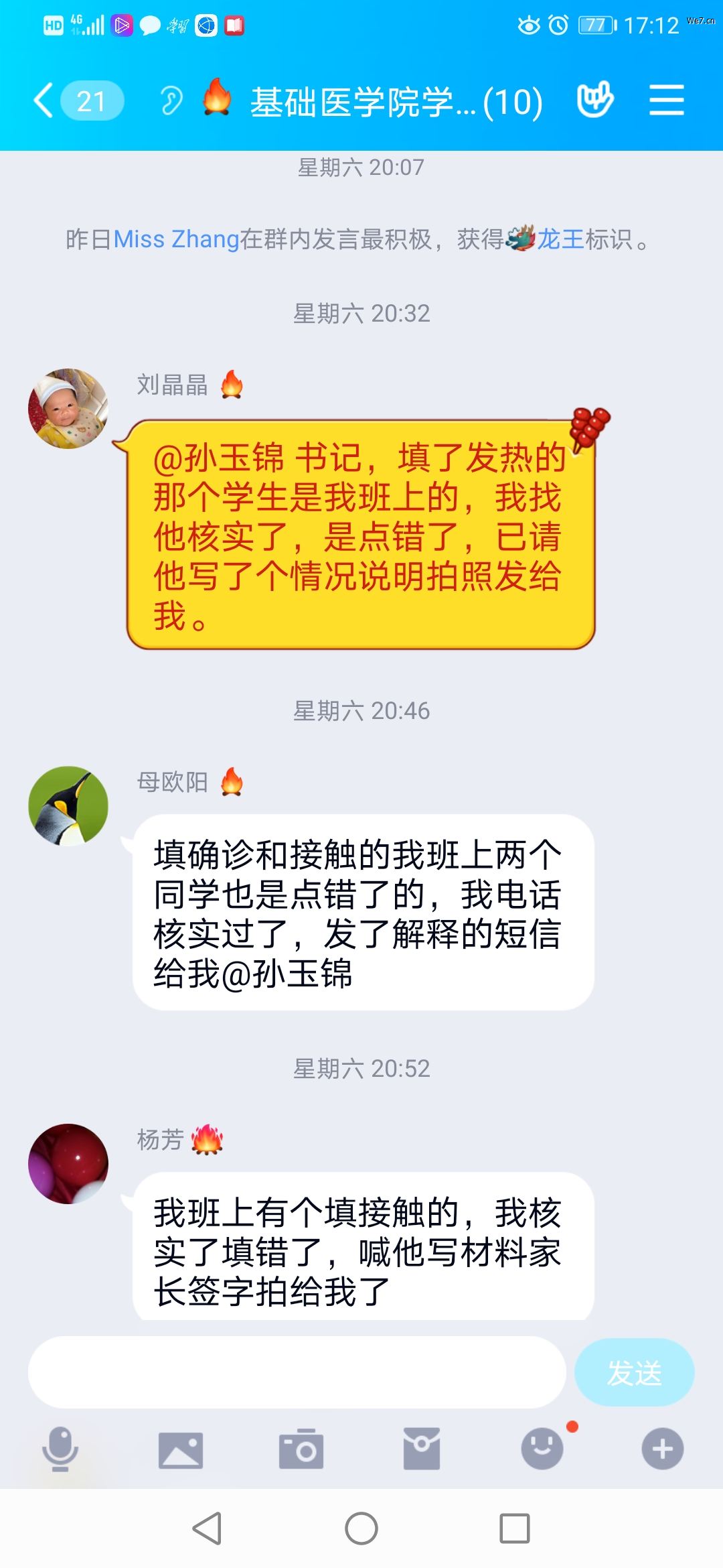 辅导员/班主任将每天的疫情问卷二维码发在班级群(有效时间8:00-18:00),员工只需要抽几分钟时间填写提交,而我们却可以依据“分类统计”和“自定义查询”了解到每一个员工的疫情详细情况。辅导员/班主任每天晚上认真分析问卷结果,对筛选出“有状况”的员工一一进行核实并进行健康指导。如有的辅导员遇到员工填写“流鼻涕”时:“我问她啥子原因,她说她家那边太冷了,冷风吹的,我让她烤火,多喝热水,好好休息,好了多锻炼身体,她多不好意思的”;有的辅导员遇到员工出现“咽喉疼痛”时:“我问员工,你是学医的,自己分析哈你的咽喉疼痛可能是啥原因引起的呢?员工说不晓得哇,反正就是有点痛。我说咱们这个是摸排新冠病毒肺炎疫情,你的咽喉疼痛莫不是过年香瓜子、香花生吃多了惹的祸?要注意健康饮食哦!带着些许幽默,员工欣然接受建议”;有的辅导员遇到员工填写“接触过确诊或疑似病人”时:“把我吓安逸了,赶紧打电话求证,结果这个娃娃说是不小心点错了。虚惊一场!”。