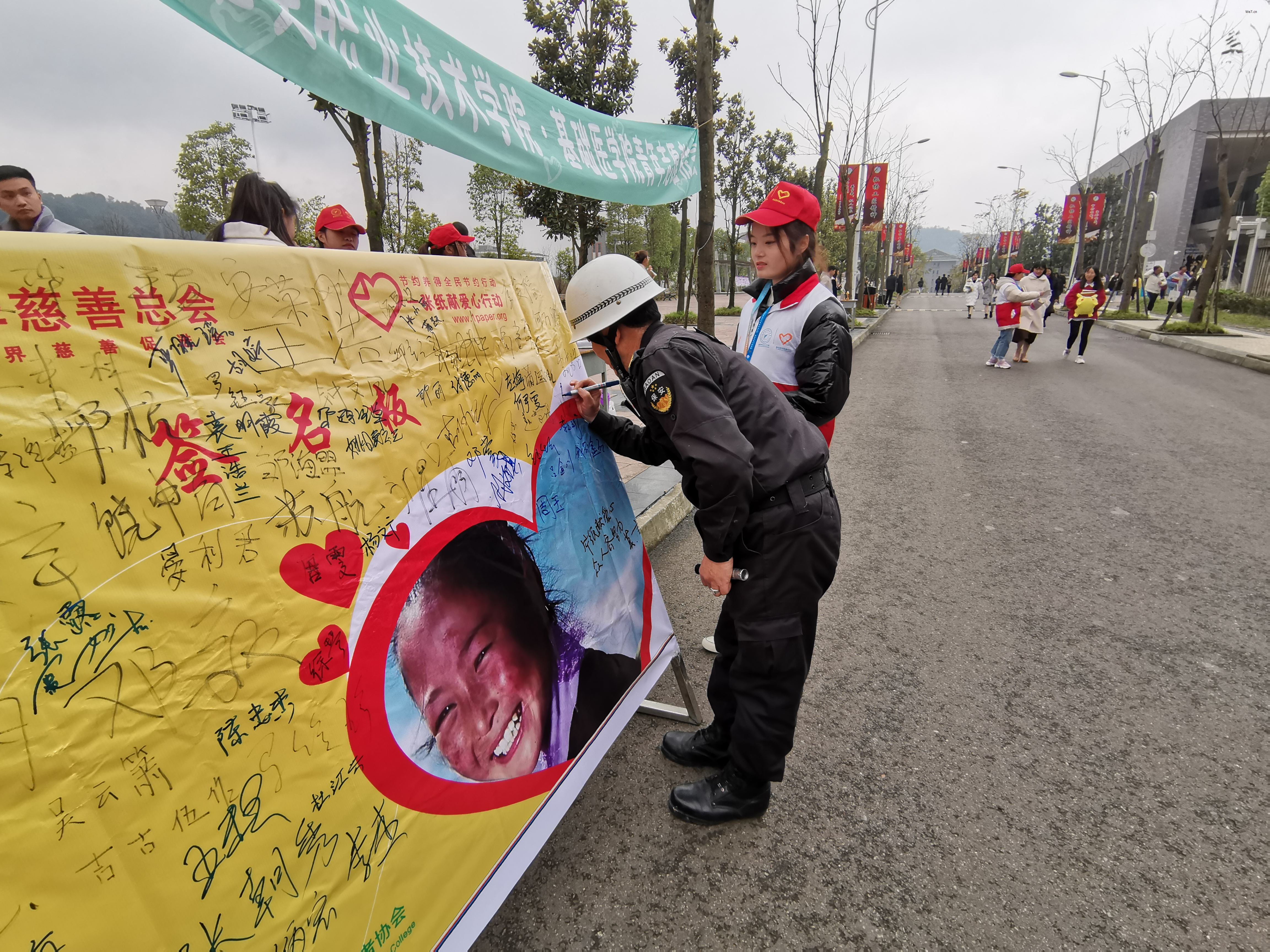 为在校园营造“友爱、文明、互助”的良好氛围,倡导爱心奉献精神,11月26日中午12:00,太阳成集团tyc7111cc青志协13名志愿者在经开区实训与服务中心宿舍与食堂之间开展“一张纸献爱心”公益募捐活动。