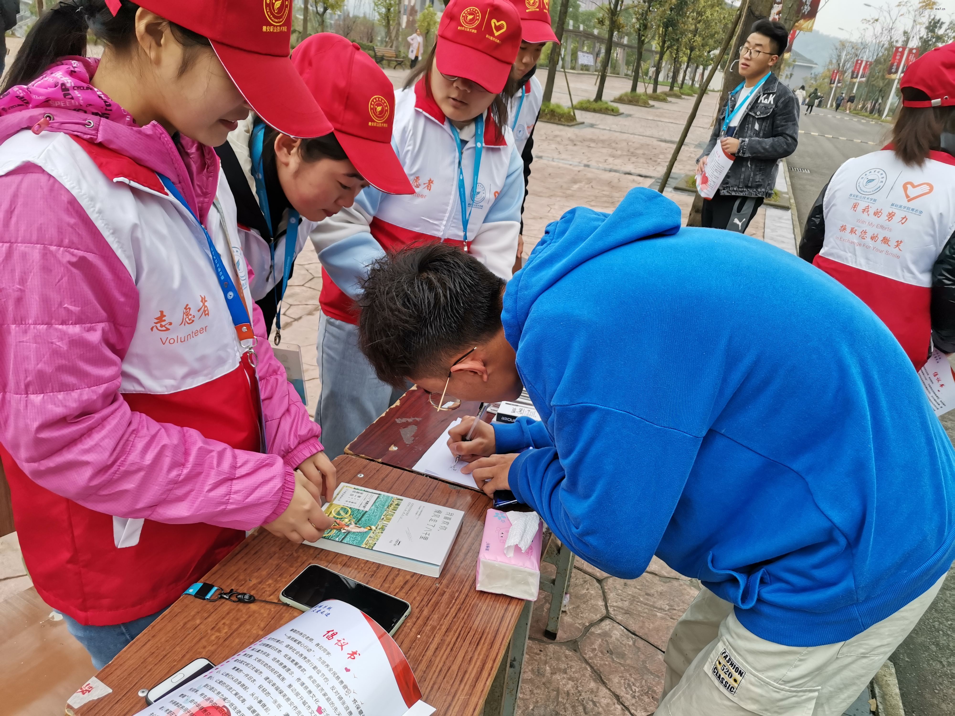 活动中,志愿者宣读“一张纸献爱心”倡议书,让同学们清楚地认识到,点滴爱心也会汇聚成河,一丝烛光也可以温暖他人。志愿者向同学们讲解此次的活动概况,积极引导同学们向贫困山区的小孩捐助衣物,加入爱心募捐活动中。在志愿者和同学们的共同努力下,活动顺利开展,共捐赠衣物50件,书籍20本,200余人在签名墙上签名。