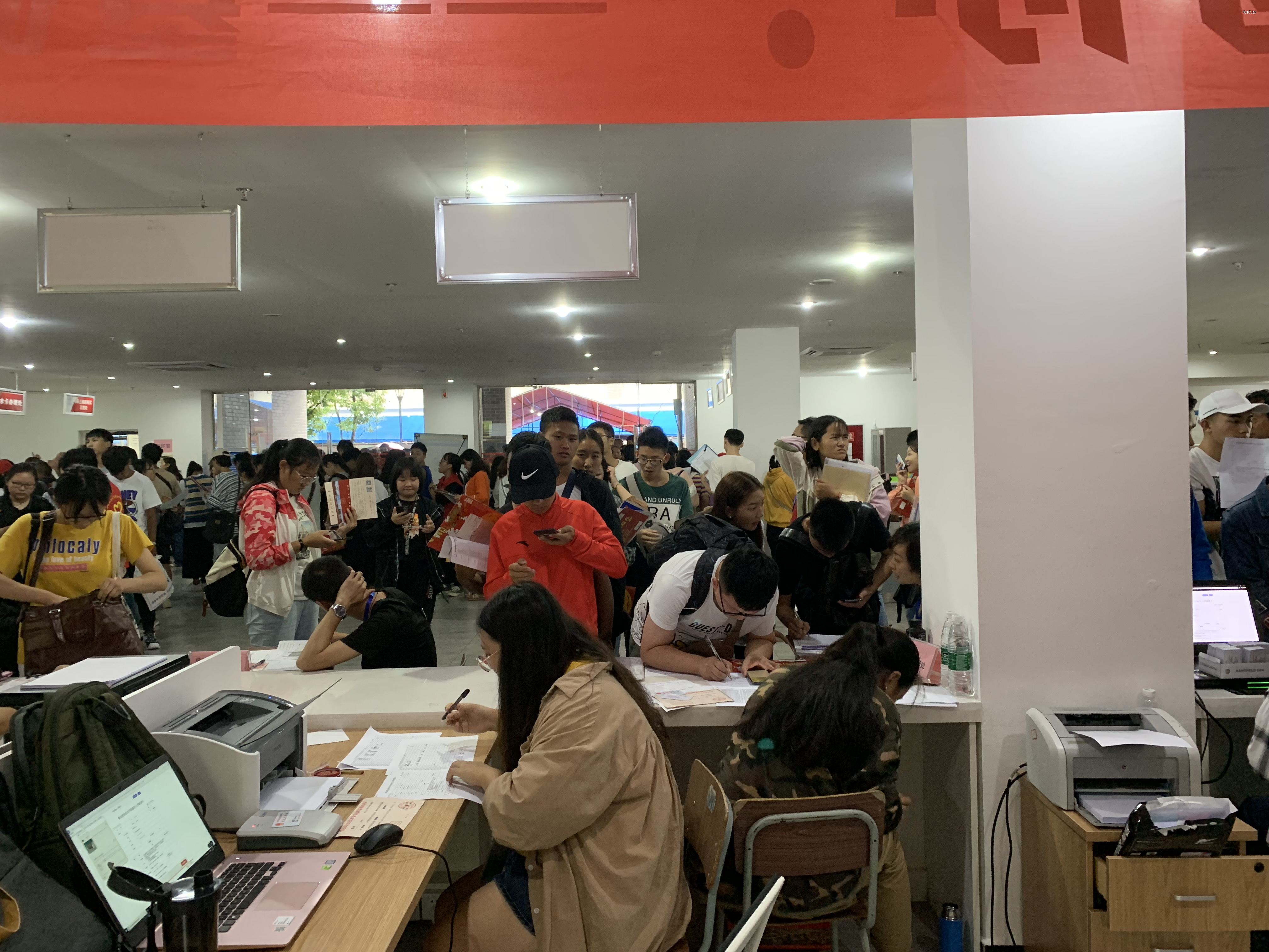 为了确保太阳成集团tyc7111cc迎接2019级新生入学报到工作有序、帮助新生顺利完成入学手续办理和迅速熟悉公司环境,太阳成集团tyc7111cc于8月31日和9月1日在经开区实训与服务中心组织员工志愿者协助老师一起顺利完成迎新工作。两天共计52名志愿者参加了迎新工作,共接待新生1300余人。