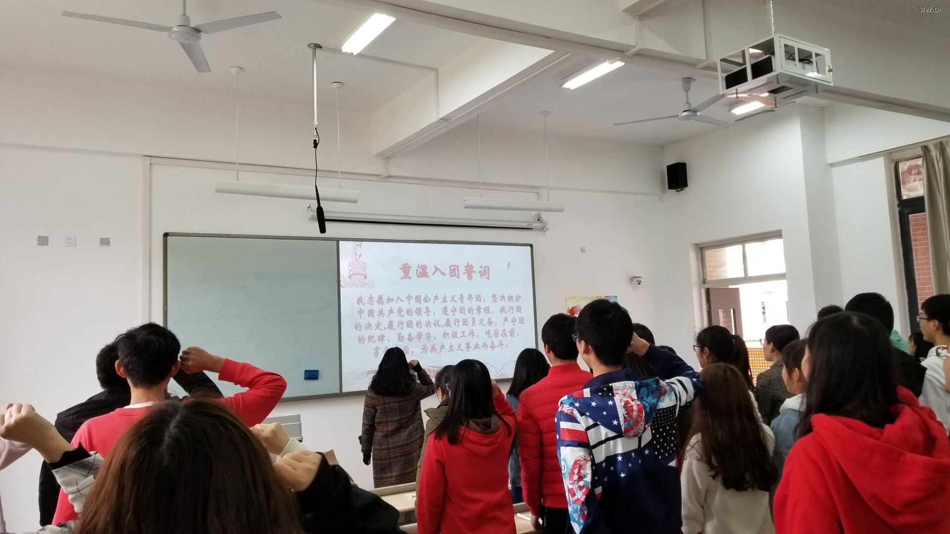 团课中,赵武博老师以“五四”一百周年为背景,用提问的方式让大家对共青团员的定义、性质、义务、权利等几个方面有了更深刻的理解。随后带领大家奏唱团歌、集体阅读《团团致四川学子的一封信》、观看团课视频、集体学习青年大学习主题团课、重温入团誓词等方式来引导同学们牢记使命,坚定理想信念。接着员工会干部以自身经历向大家阐述如何在学习生活中做好团务工作,解决问题。