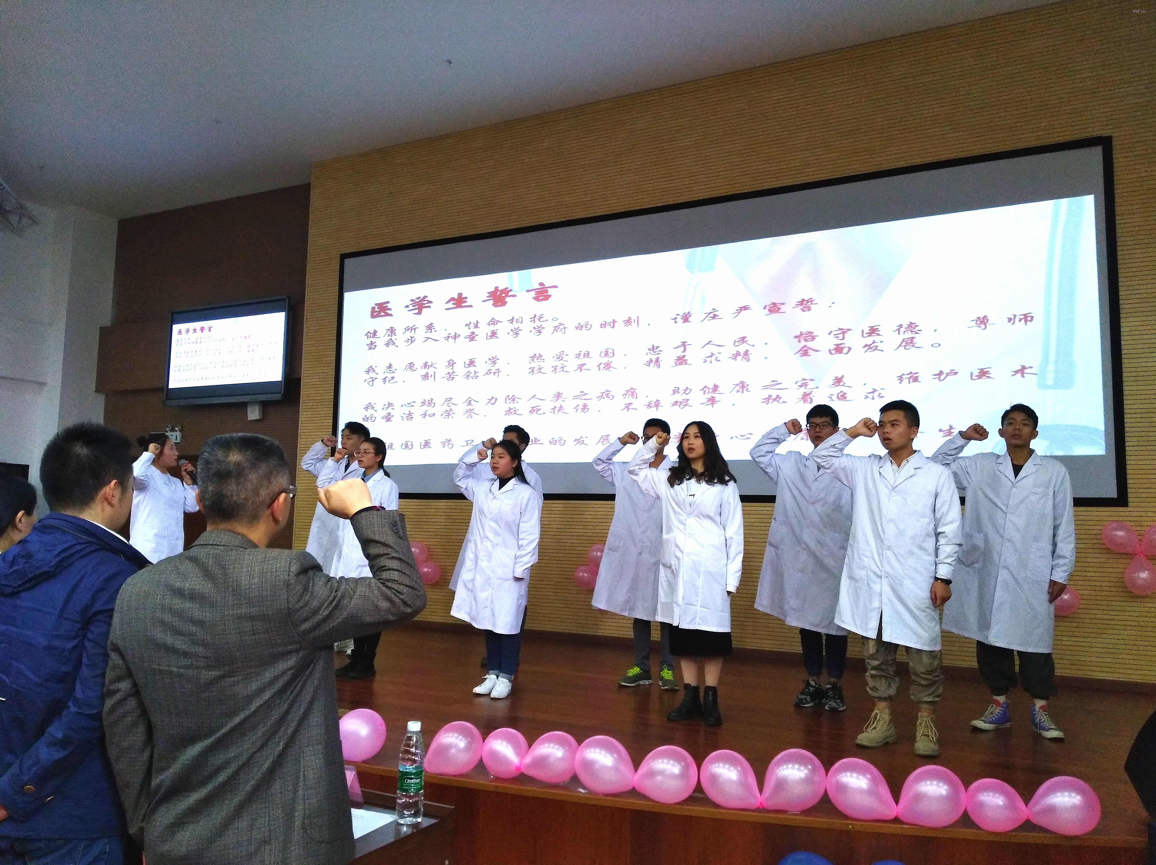 紧接着会议进入第五项议程,学习部部长陈进带领全体同学庄严宣誓。“健康所系,性命相托。当我步入神圣医学学府的时刻,谨庄严宣誓:我志愿献身医学,热爱祖国,忠于人民,恪守医德,尊师守纪,刻苦钻研,孜孜不倦,精益求精,全面发展。我决心竭尽全力除人类之病痛,助健康之完美,维护医术的圣洁和荣誉,救死扶伤,不辞艰辛,执着追求,为祖国医药卫生事业的发展和人类身心健康奋斗终生。”