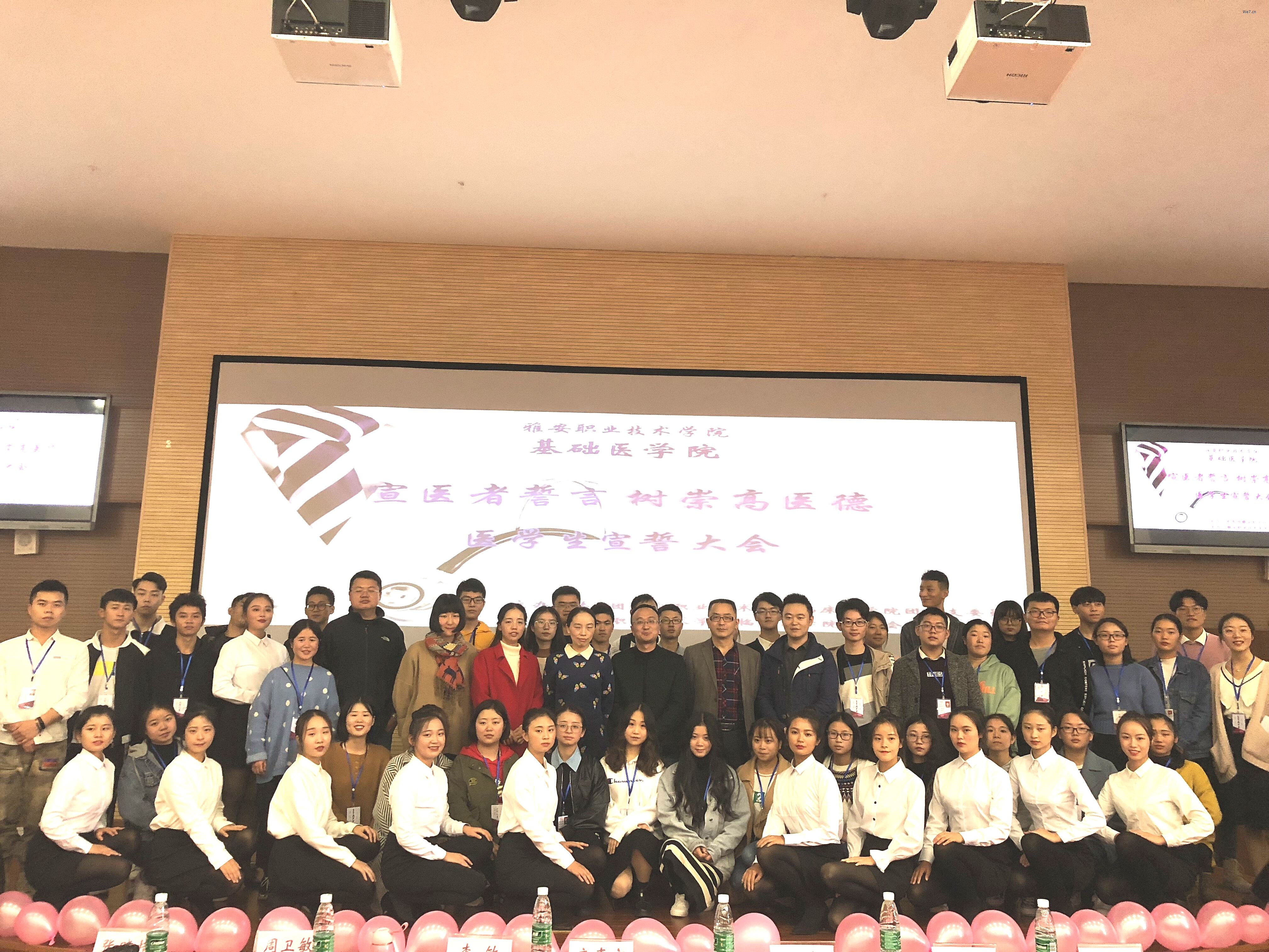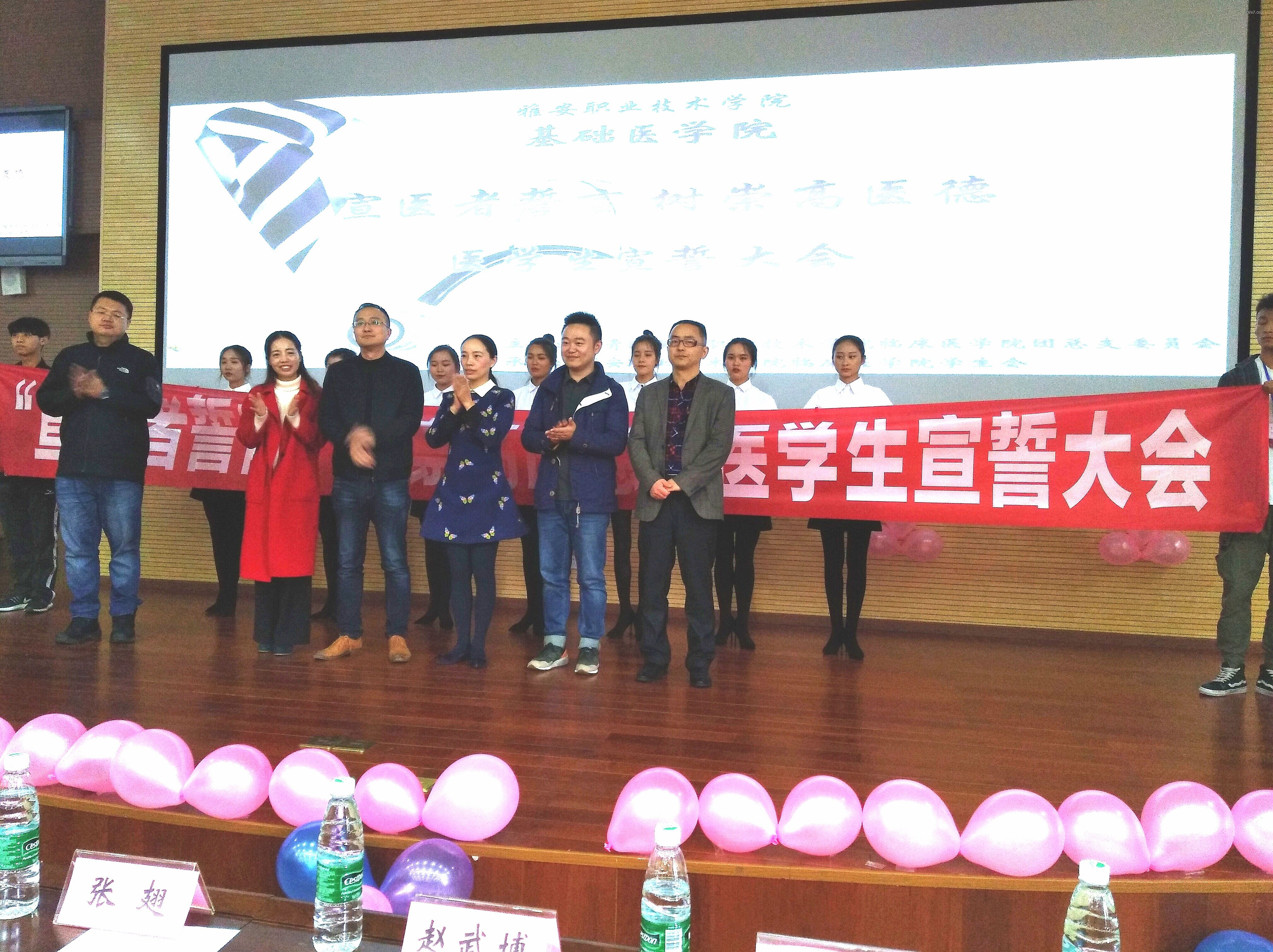 大会共分为七项议程。首先主持人介绍到场嘉宾,嘉宾到台上横幅签名后,大家一起观看了医员工短片后,李敏老师发表致辞。她回顾了公司及附院医院的发展史,告诫同学们要扎实学好真本领,才能在今后的医员工涯中绽放异彩。随后,李千千代表18级新生表明了要牢记医员工责任与使命,立志成为合格医员工的决心。