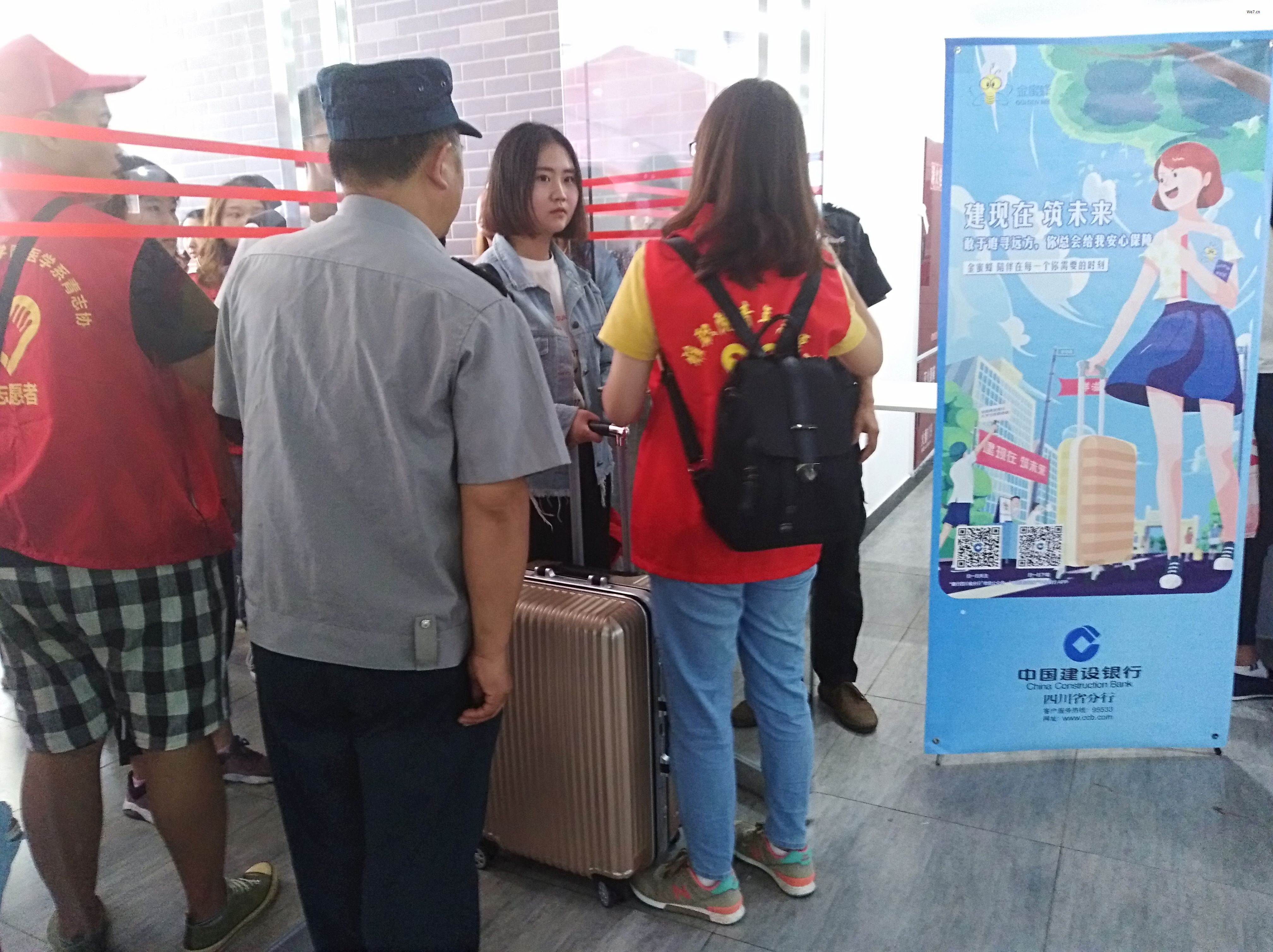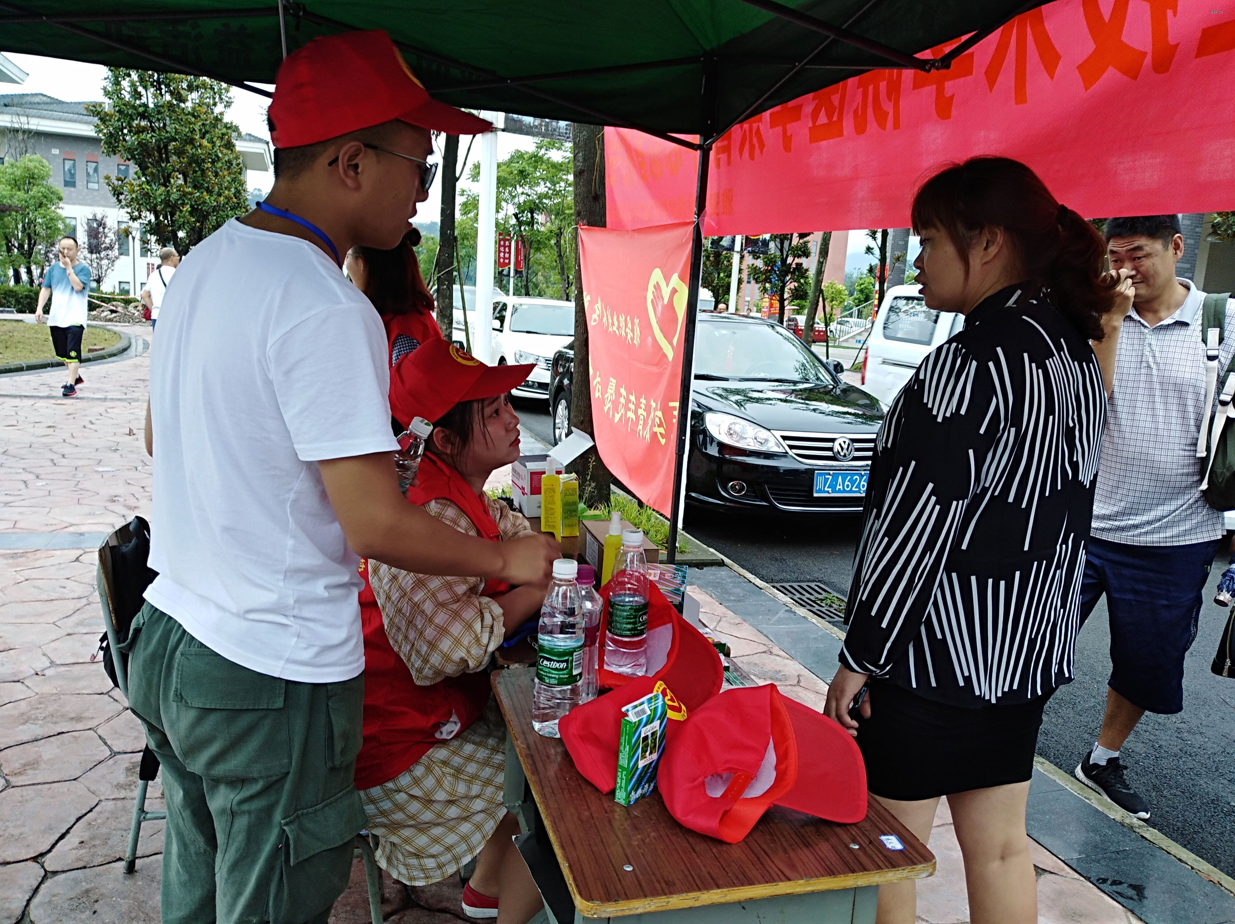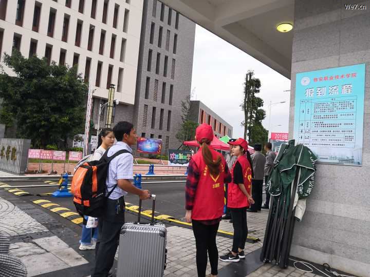 志愿者们穿着红色的志愿服装,戴着红色的帽子,坚守在每一个站点,为不明方向的新生以及家长指引道路,不厌其烦地为新生、家长解疑答惑。人头攒动,秩序井然。学长学姐们的热情周到的服务很快消除了新生们初来乍到的陌生感。迎接工作中新生们的声声“学长学姐”叫得志愿者的心暖暖的。整个迎新现场井然有序且热闹非凡。志愿者的热情服务、温馨笑容,也让新生们在这个陌生的环境中,找到了家的感觉。