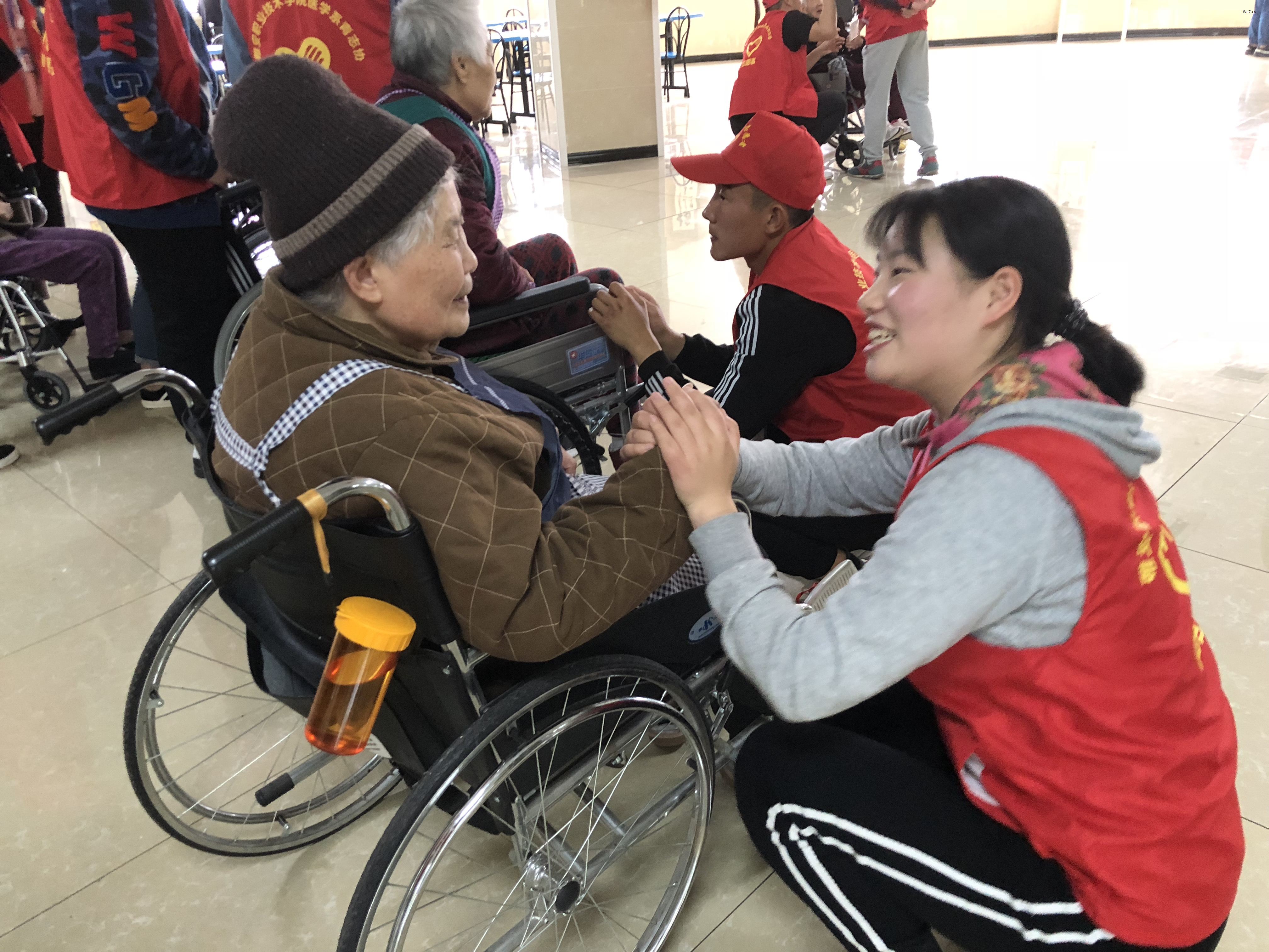 表演结束后,志愿者们饶有兴致地与老人们亲切地交谈,气氛融洽,温情浓浓。有的老人行动不便,这群“孙女、孙儿”或是搀扶老人散步,或是用轮椅推着老人回房间休息,整个内二科洋溢着温馨、祥和的气氛。志愿者们耐心听老人讲起了自己从解放前到今天在党的领导下的生活变化,从吃不起饭到今天的老有所养的幸福生活,嘱咐志愿者们珍惜如今幸福生活,好好学习,成为一名好医生。老人们欣慰地享受着这群晚辈们带来的关心和陪伴,他们和志愿者们度过了一段欢乐祥和的美好时光。