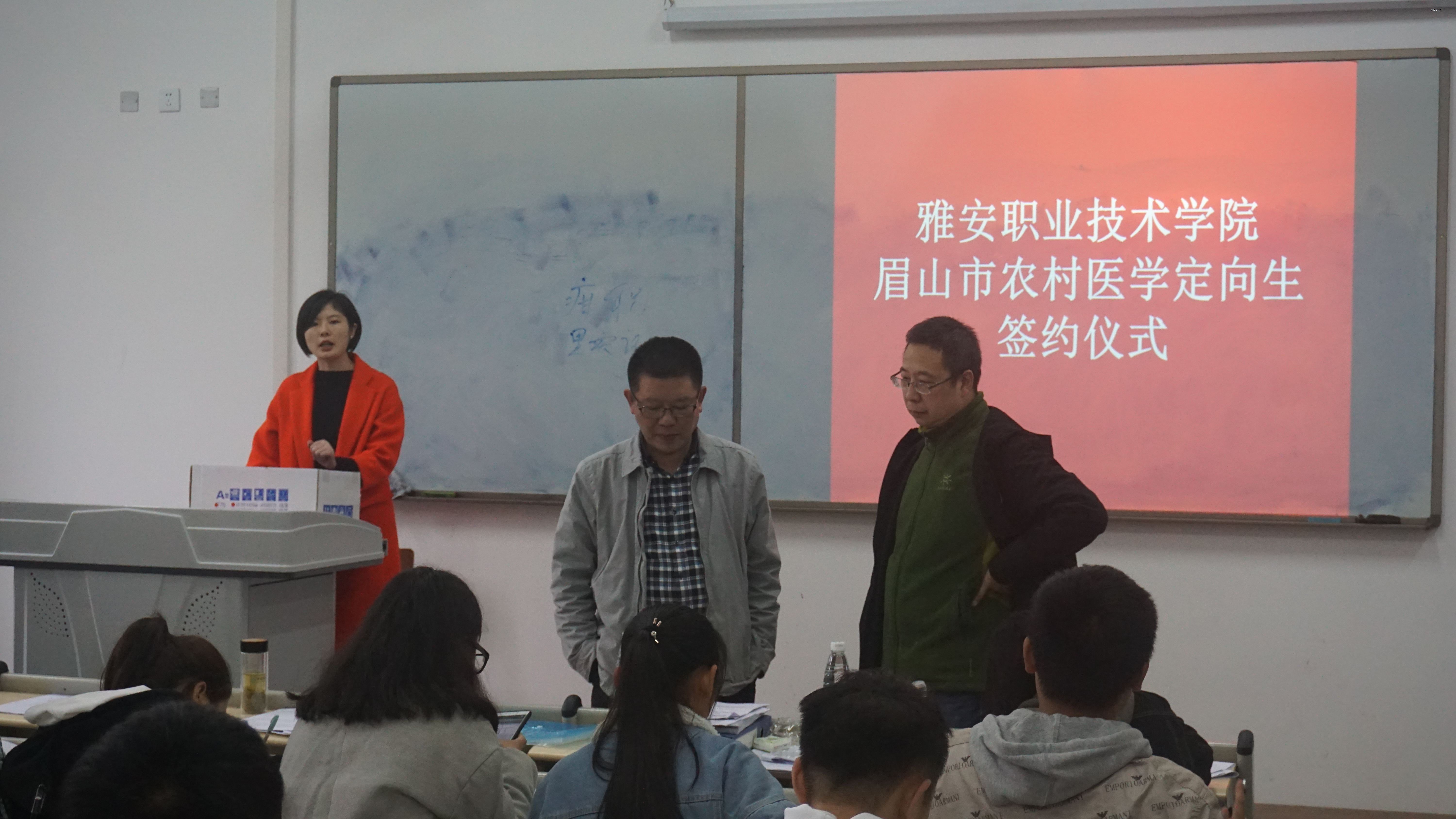 11月16日下午2:30,医学系临床医学专业眉山市农村医员工定向培养就业协议签约仪式在经开区实训与服务中心2107举行。医学系系主任薛正毅、人才招聘工作处处长宋峰、眉山卫计委胡科长及临床医学专业辅导员、相关工作人员参加了签约仪式。除了前期报名并通过审核的临床医学专业60位员工,还有10余位家长也来到了签约现场。
