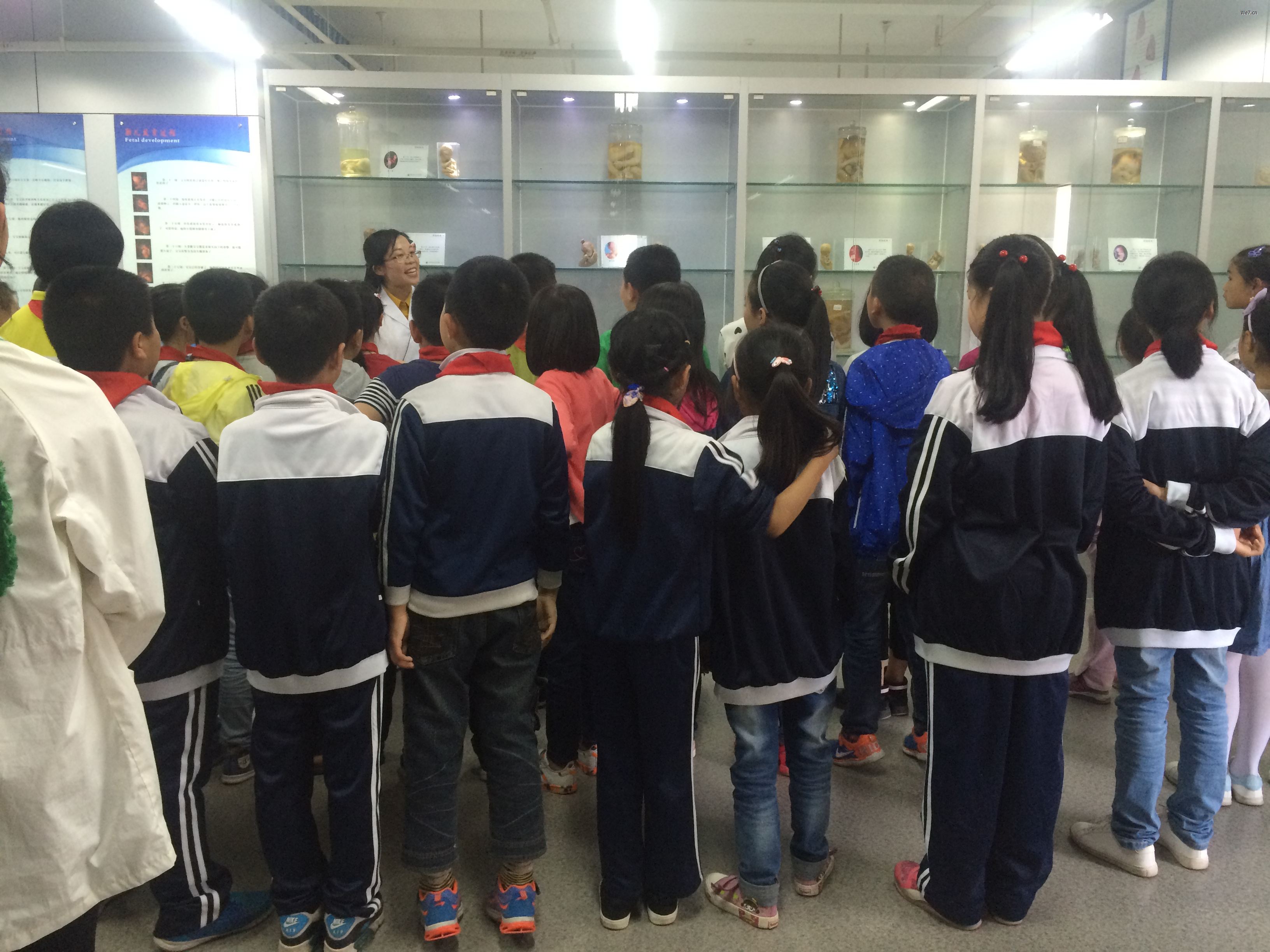 职业教育周活动期间,基础医学部积极面向社会公众积极宣传,并联合科研处、教育系等部门积极引导社会公众入馆参观学习。在5月8日-5月15日一周时间内,接待了雨城区街道办的工作人员、汉碑路慈济小学的员工,共计55人次。带领雨城区街道办的工作人员进一步了解人体生命科学馆,了解公司科普工作的情况,为未来合作,共同开展好科普工作做好准备。5月12日,汉碑路慈济小学的四、五、六年级50名员工代表带上红领巾,兴致勃勃的来到人体生命科学馆。人体生命科学馆解说员李老师热情的接待了同学们,带他们重点参观了胚胎展区、科普知识展区、护理展区;让同学们学习了胚胎的起源和发育,了解了基本的医卫知识和毒品、网瘾等的危害,为同学们建立正确的生活方式,树立正确的人生观、价值观做了积极正确的引导。