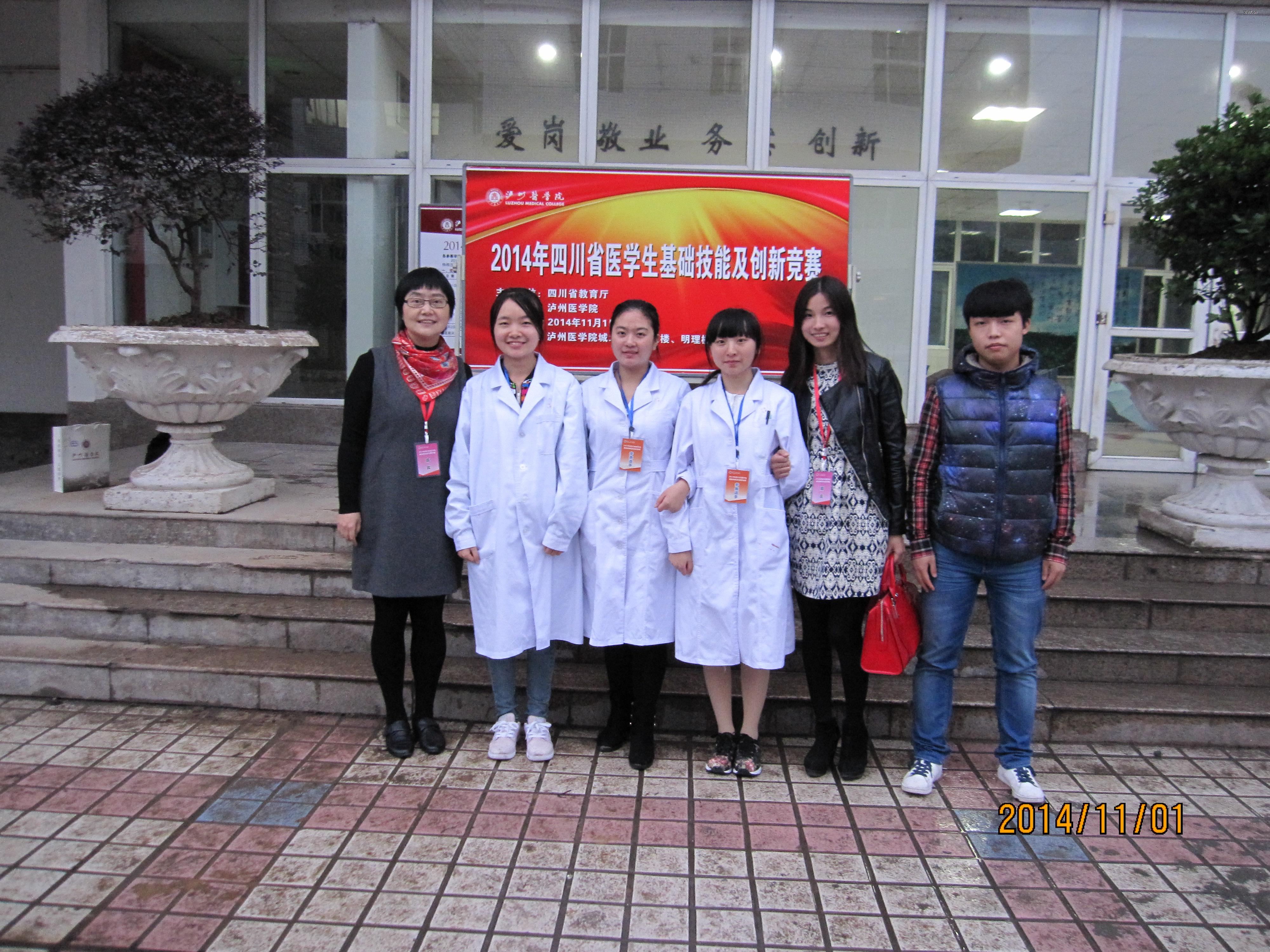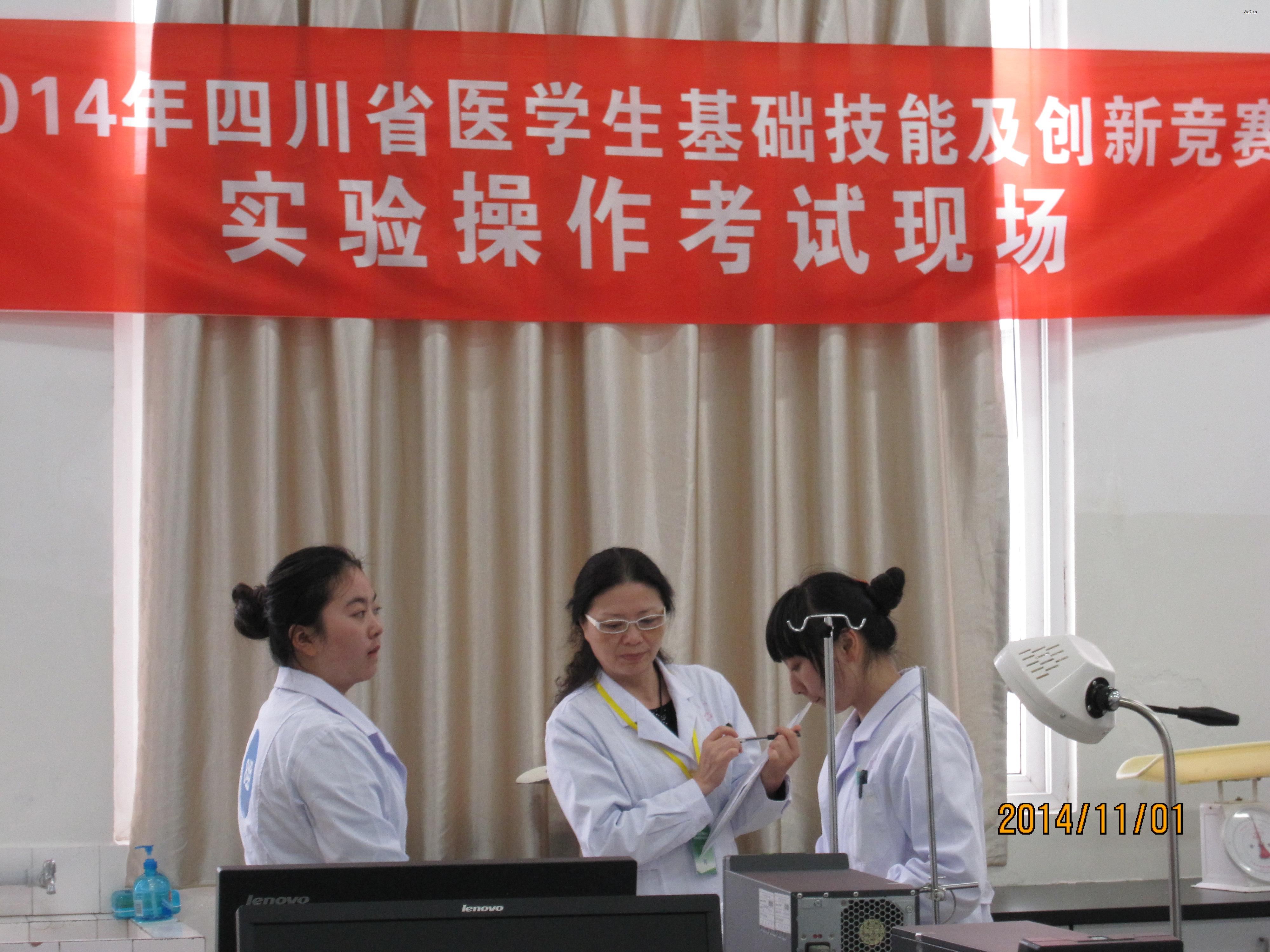 2014年 11月1 - 2日,由四川省教育厅主办、泸州医公司承办的2014年四川省医员工基础技能及创新竞赛在泸州医公司城北校区举行。来自全省10所医公司校的17支参赛队参加了本次竞赛。此次竞赛包括基本理论知识考察、基本技能操作比赛、PPT创新实验成果展示等三个部分,内容涉及人体解剖学、组织学与胚胎学、生理学、生物化学等10大基础医学主干课程的知识,既要考核参赛选手在技能操作的规范性、数据处理的正确性、处理突发事件的应对性、实验结论的严谨性和科学性等方面的能力,也要考核参赛选手在基础医学学习阶段自行设计完成或亲自参与完成科学研究的能力。