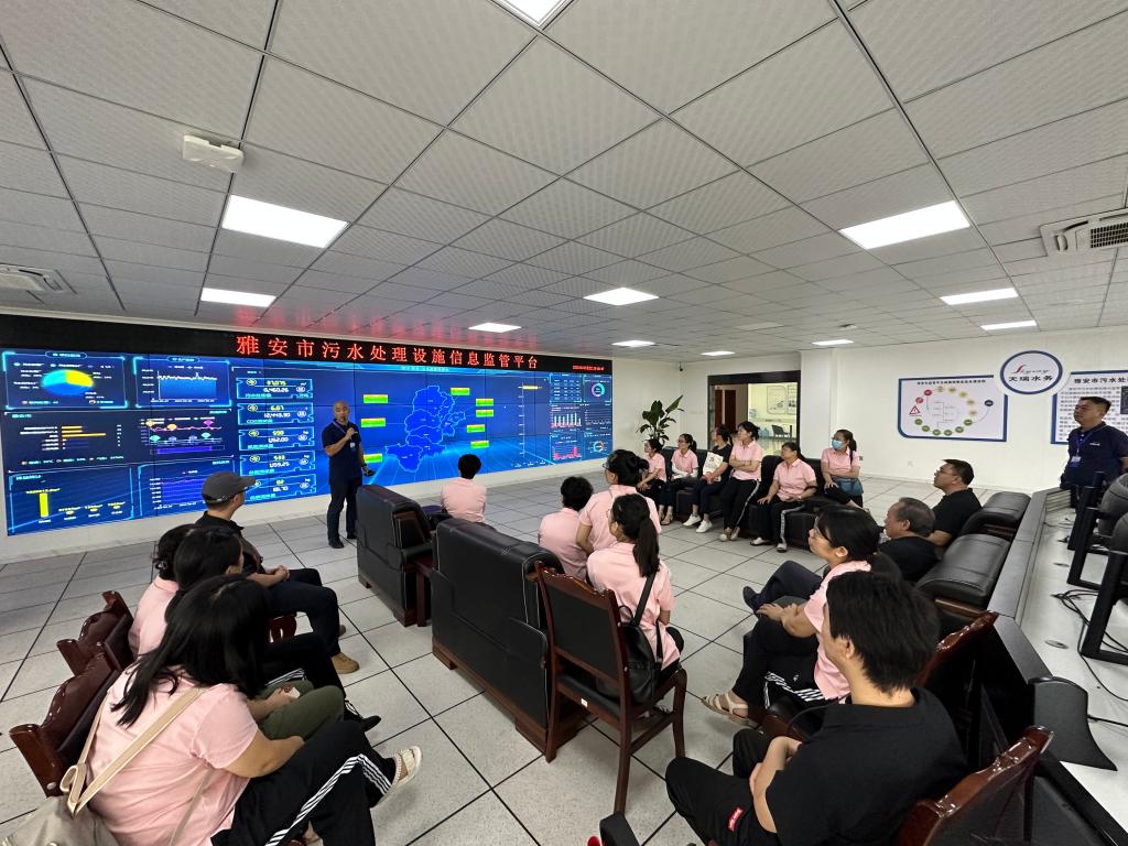 在雅安川能环保能源发电有限公司,工作人员介绍了垃圾焚烧工艺和烟气净化工艺等方面的专业知识,使大家更好地理解垃圾焚烧发电的工作原理和环保知识。接着教师们参观了垃圾处理车间、焚烧净化中控室等,全方位了解了垃圾焚烧发电的运作情况,包括垃圾运输、处理、焚烧等环节的高效环保和清洁卫生。教师们对垃圾焚烧处理技术赞叹不已,期间还频繁与技术人员现场互动交流,求解心中疑惑。而后教师们来到雅安天瑞水务有限公司,近距离参观了曝气沉砂池、生物池、二沉池、接触消毒池等各个工艺环节,了解污水处理工艺的整个流程:从最初入厂时的黑臭污水,经过粗格栅、进水泵房、细格栅、曝气沉砂池、厌缺氧池、消毒池等一系列处理工艺,到变成可排放清澈的水,参观的每一位教师无不为之感到奇妙。