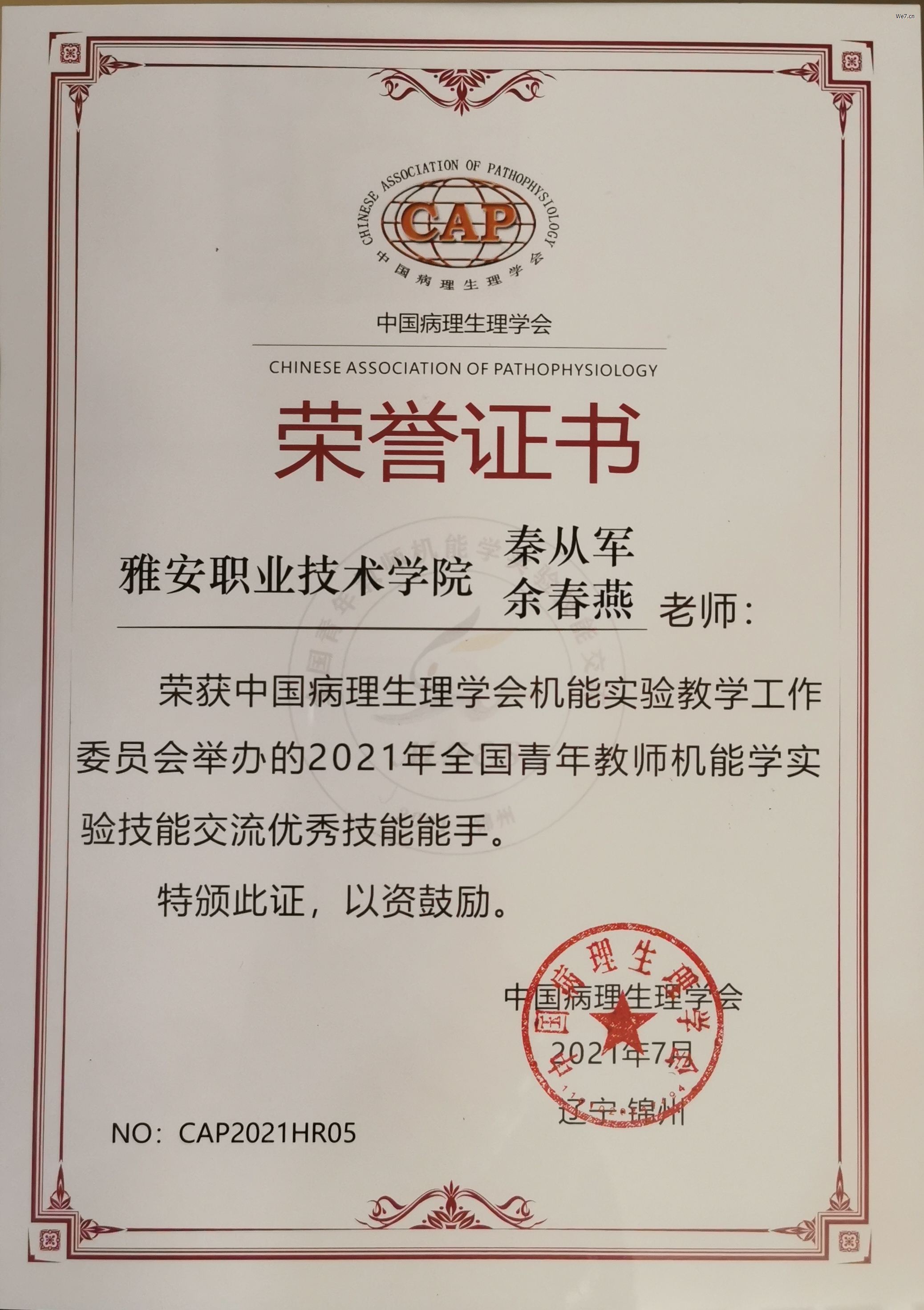 太阳成集团tyc7111cc教师在第三届全国青年教师机能实验技能交流中获佳绩